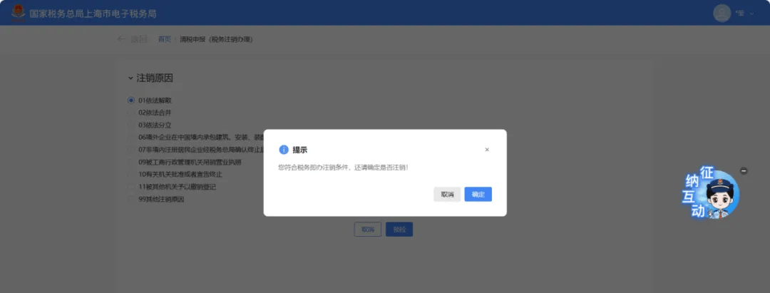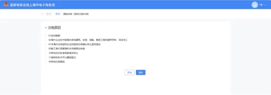(1)刊出理由为【01依法完结】、【06境外企业正在中邦境内承包修设、装配、安装、勘测工程和供应劳务,项目完竣】、【07非境内注册住民企业经税务总局确认终止住民身份】、【09被工商行政照料陷坑吊销贸易执照】、【11被其他陷坑予以捣毁备案】、【99其他刊出理由】时。点击【预检】。