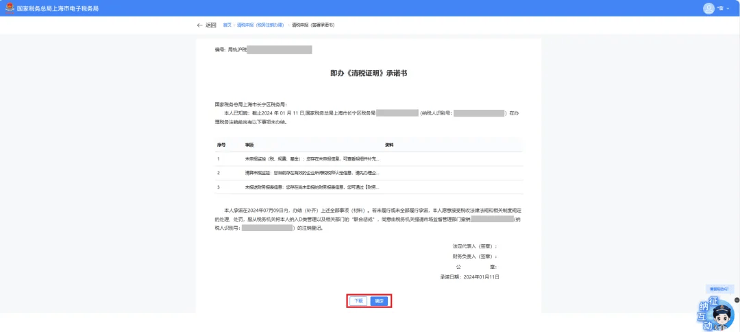 2.体例提示“您申请的清税申报生意已料理凯旋,点击查看《清税证实》。”,点击【《清税证实》】举办下载。
